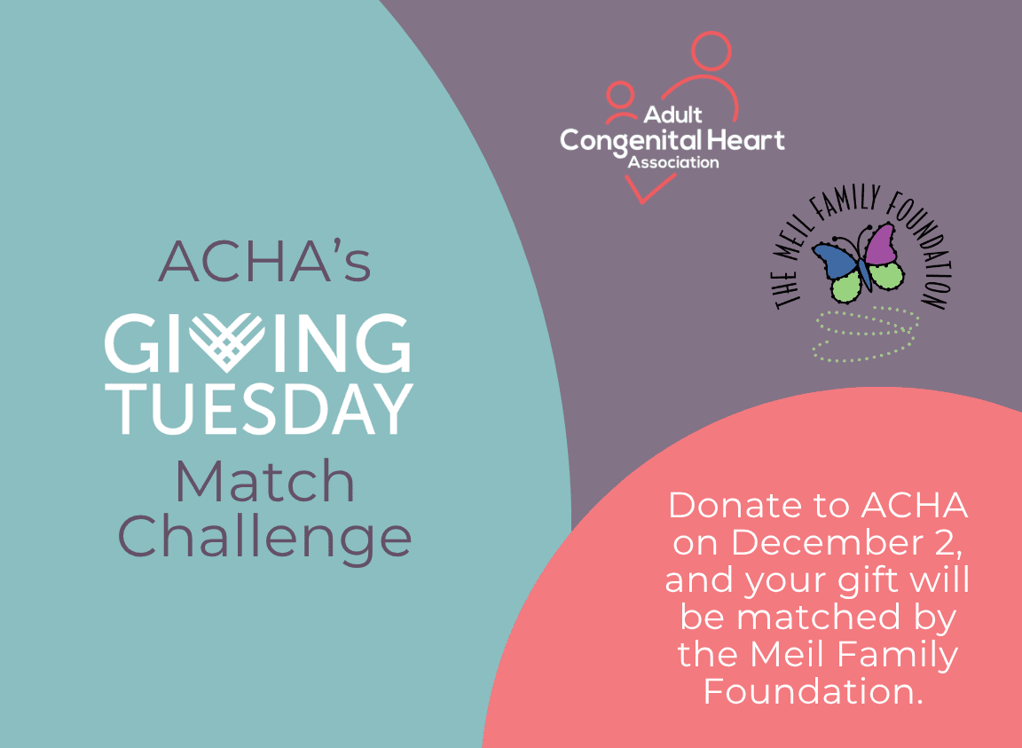As a bonus, the Meil Family Foundation will match every donation dollar-for-dollar (up to $25,000). This means if you give $50, ACHA will receive $100 to support our mission of empowering the congenital heart community. This is your chance to make twice the difference!
